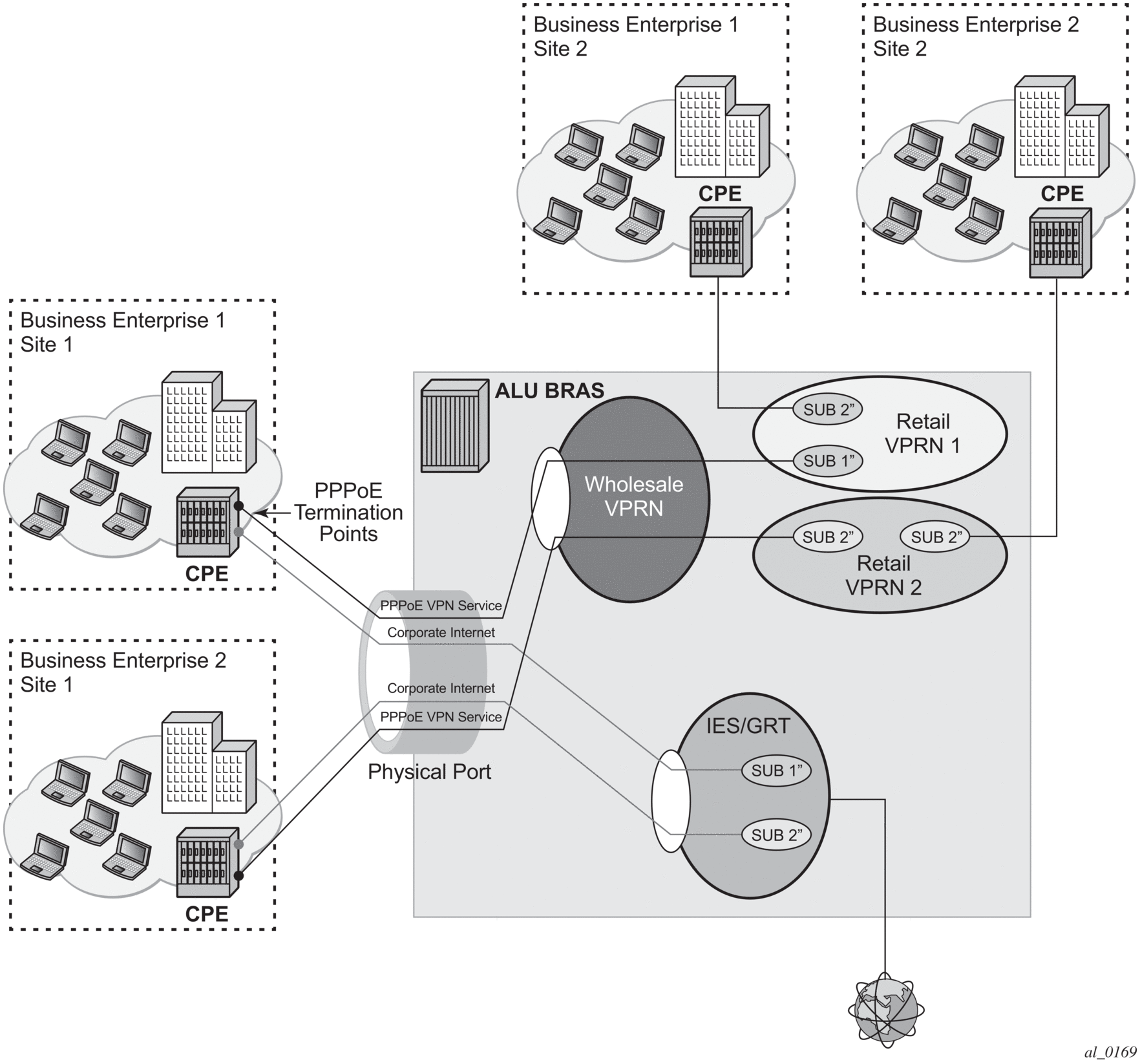 Redirection is also supported in a wholesaler/retailer VPRN model where redirected Layer 3 interface resides in the retailer VPRN.