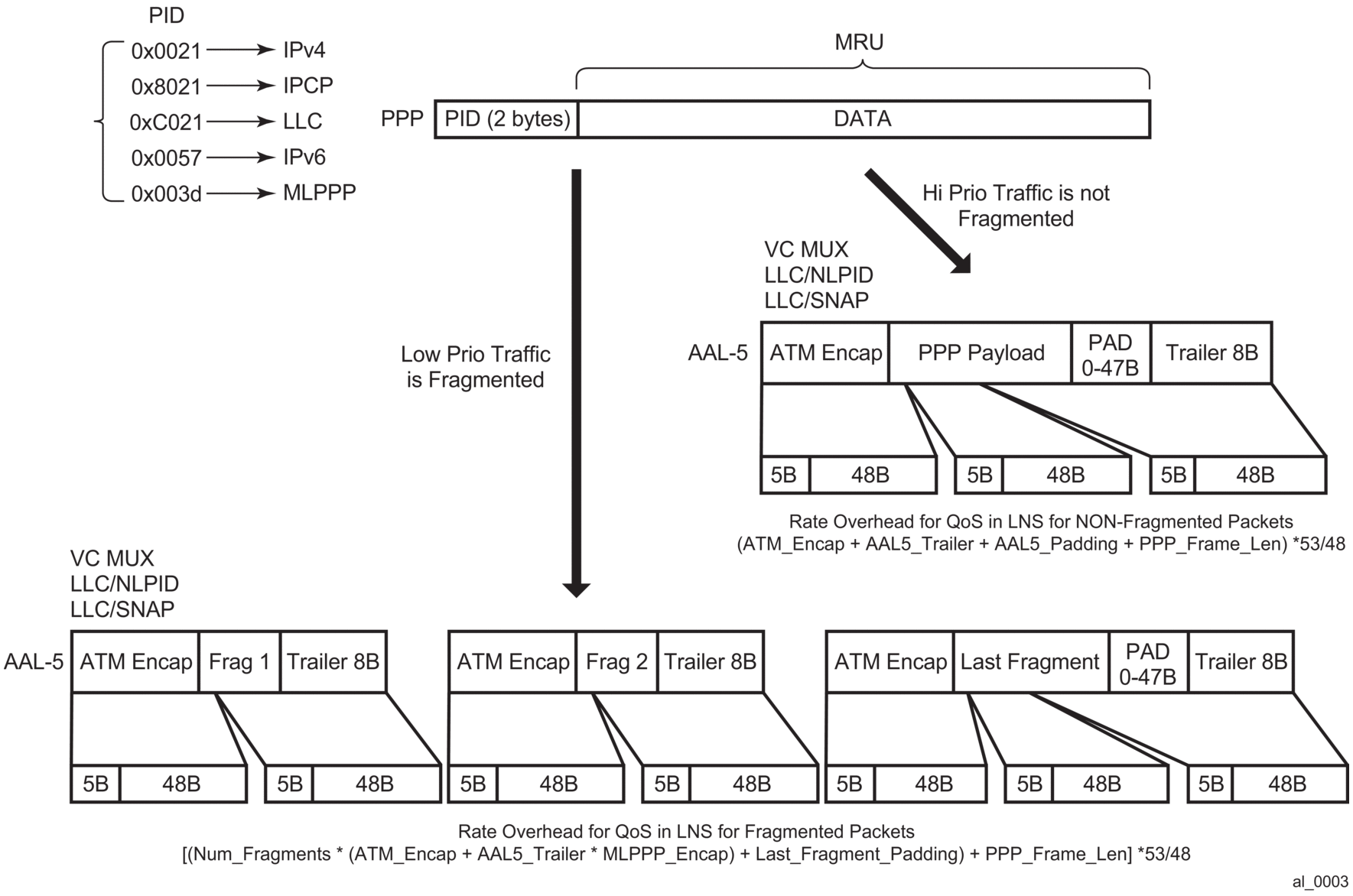 For ATM in the last mile, the LNS accounts for the following per fragment overhead: