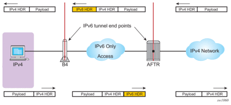 Each distinct NAT technique is referred to by its corresponding name (Large Scale NAT44 [or CGN], DS-Lite and NAT64) with the understanding that in the context of 7750 SR platform, they are all part of LSN (and not enterprise based NAT).