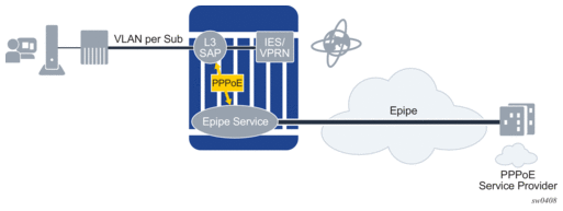 PPPoE-capable interfaces can be created in a subscriber interface in both IES and VPRN services (VPRN is supported on the 7750 SR only). Each SAP can support one or more PPPoE sessions depending on the configuration. A SAP can simultaneously have static hosts, DHCP leases and PPPoE sessions. See Limiting Subscribers, Hosts, and Sessions for a detailed description of the configuration options to limit the number of PPPoE sessions per SAP, per group-interface, per SLA profile instance, or per subscriber.